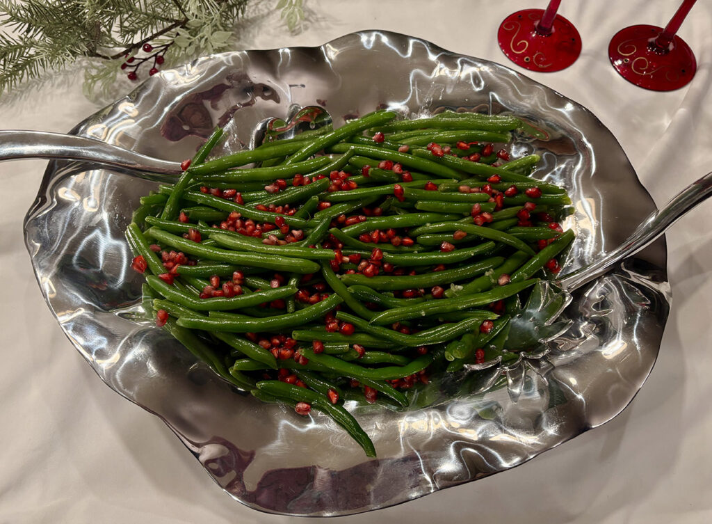 Jeweled Green Beans are a vegetable side dish that is both visually appealing and delicious. Tonya Brady submitted this recipe, noting that many foods this time of year are often quite indulgent, high in sugar, and calorie-laden. “This recipe provides a light and flavorful alternative that nicely balances the richness of many traditional holiday dishes. It also adds a beautiful, festive touch to your holiday table.”