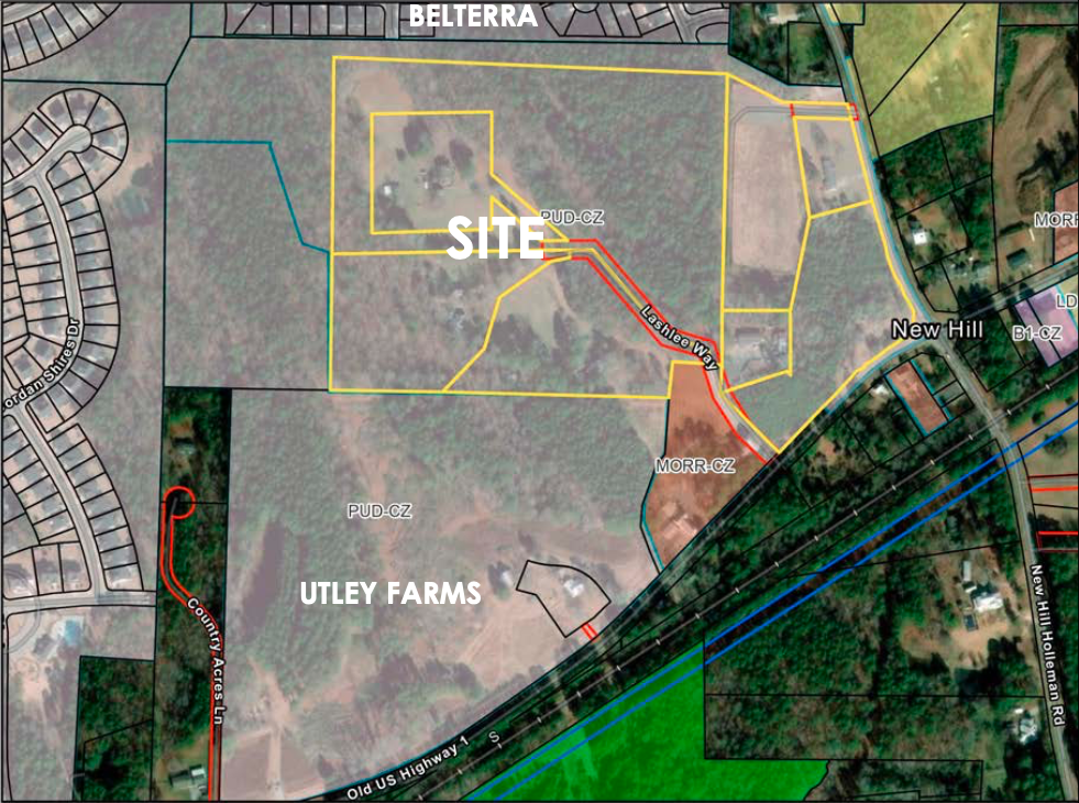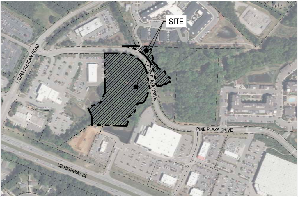 A proposal has been submitted for a five-story building on 3.62 acres. The ground floor will be retail and/or office use and floors 2-5 will be 84 residential apartments (24 studios, 24 one-bedroom units, and 36 two-bedroom units). Estimated completion is September 2027.